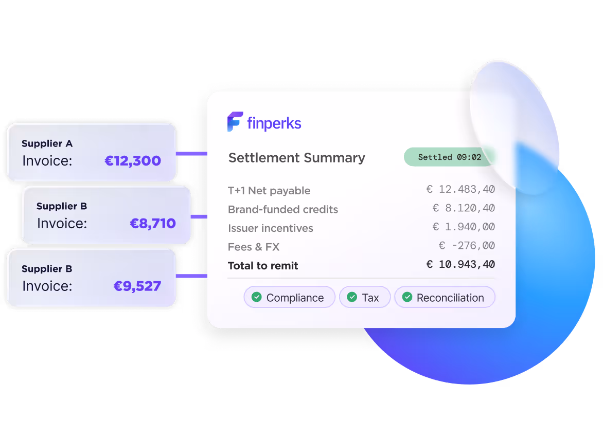 Launch in one country and expand across the EU and US without additional setup. finperks handles compliance, IT and settlement so you can focus on growth